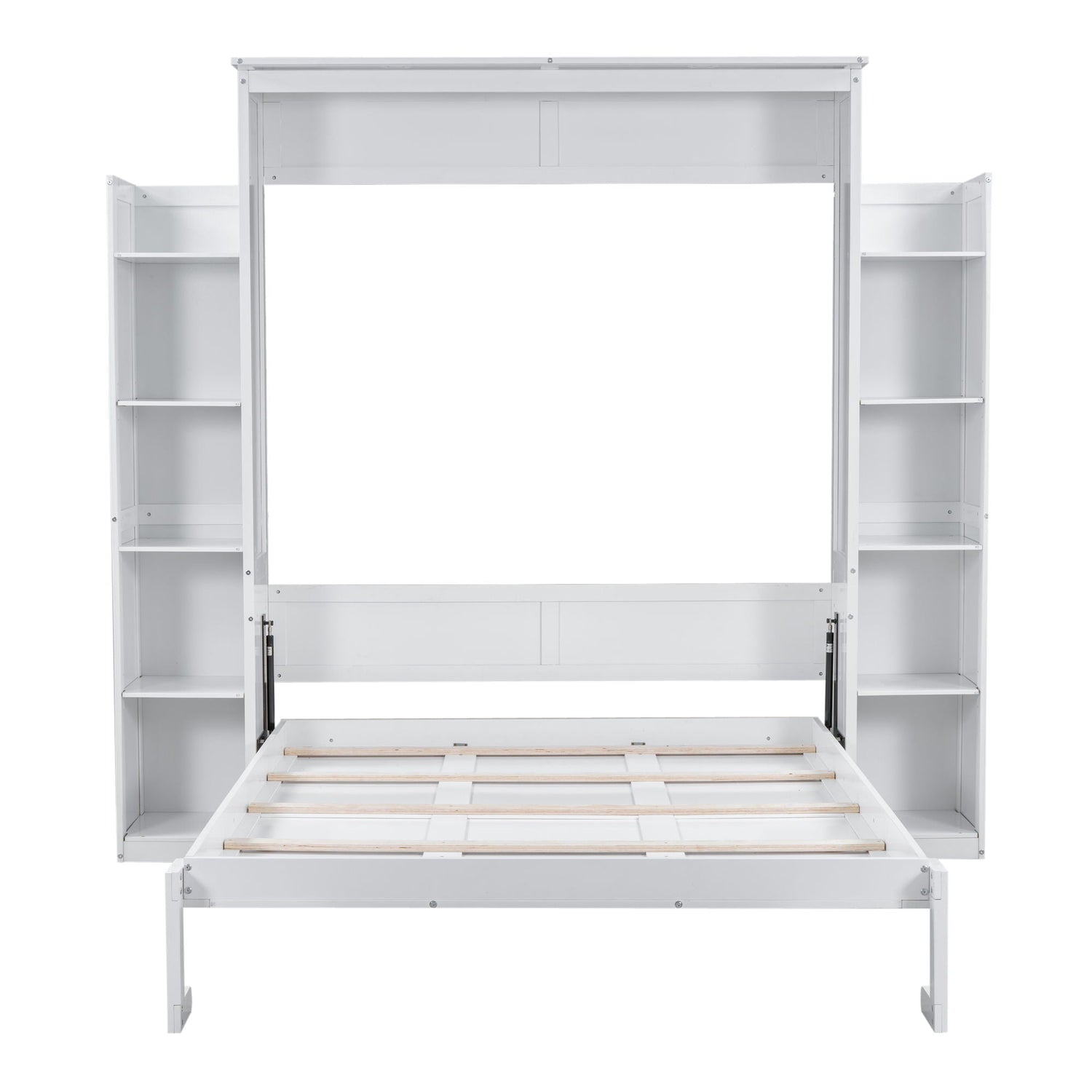 Queen Size Murphy Wall Bed With Shelves And LED Lights - White