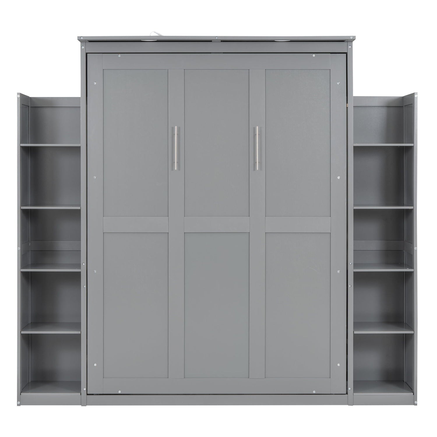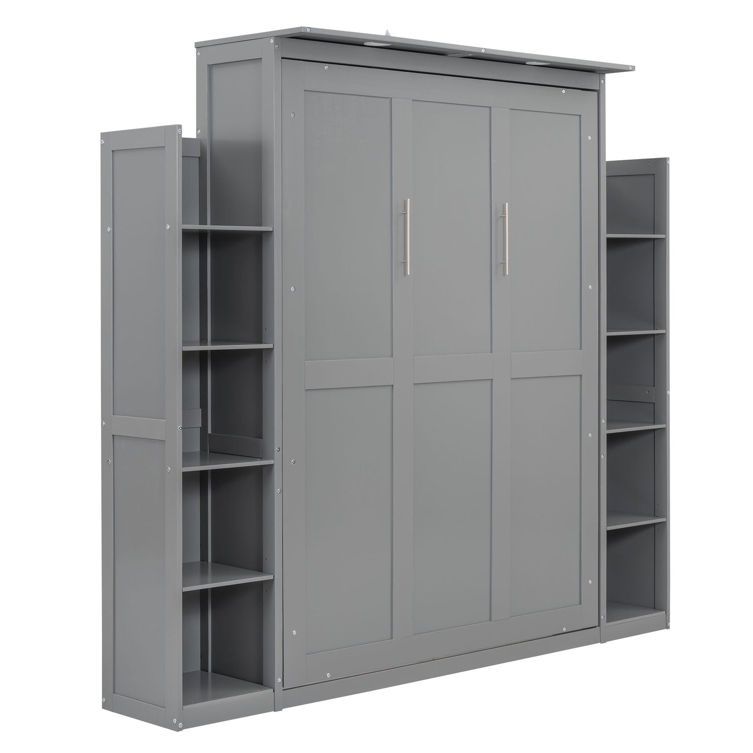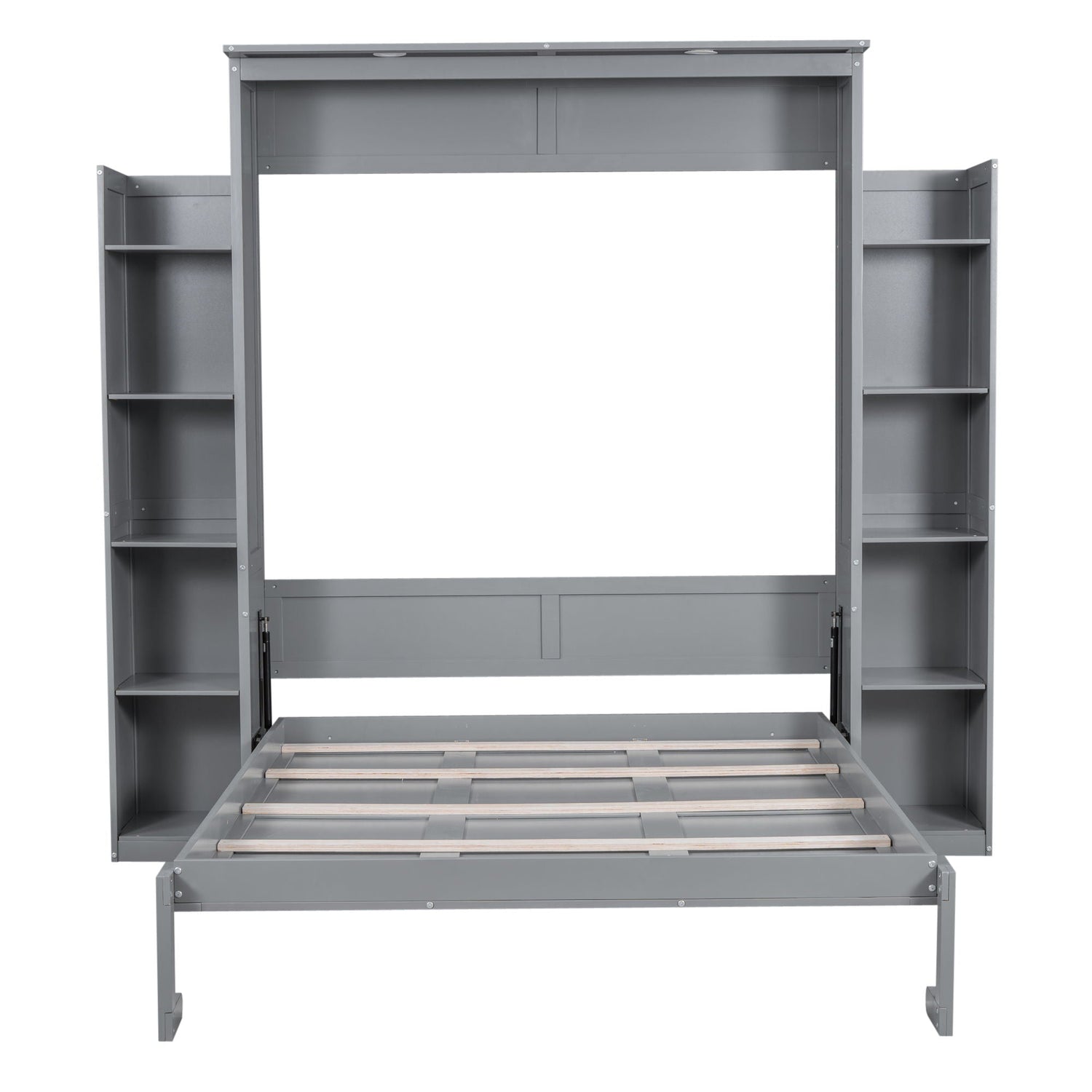 Queen Size Murphy Wall Bed With Shelves And LED Lights - Gray