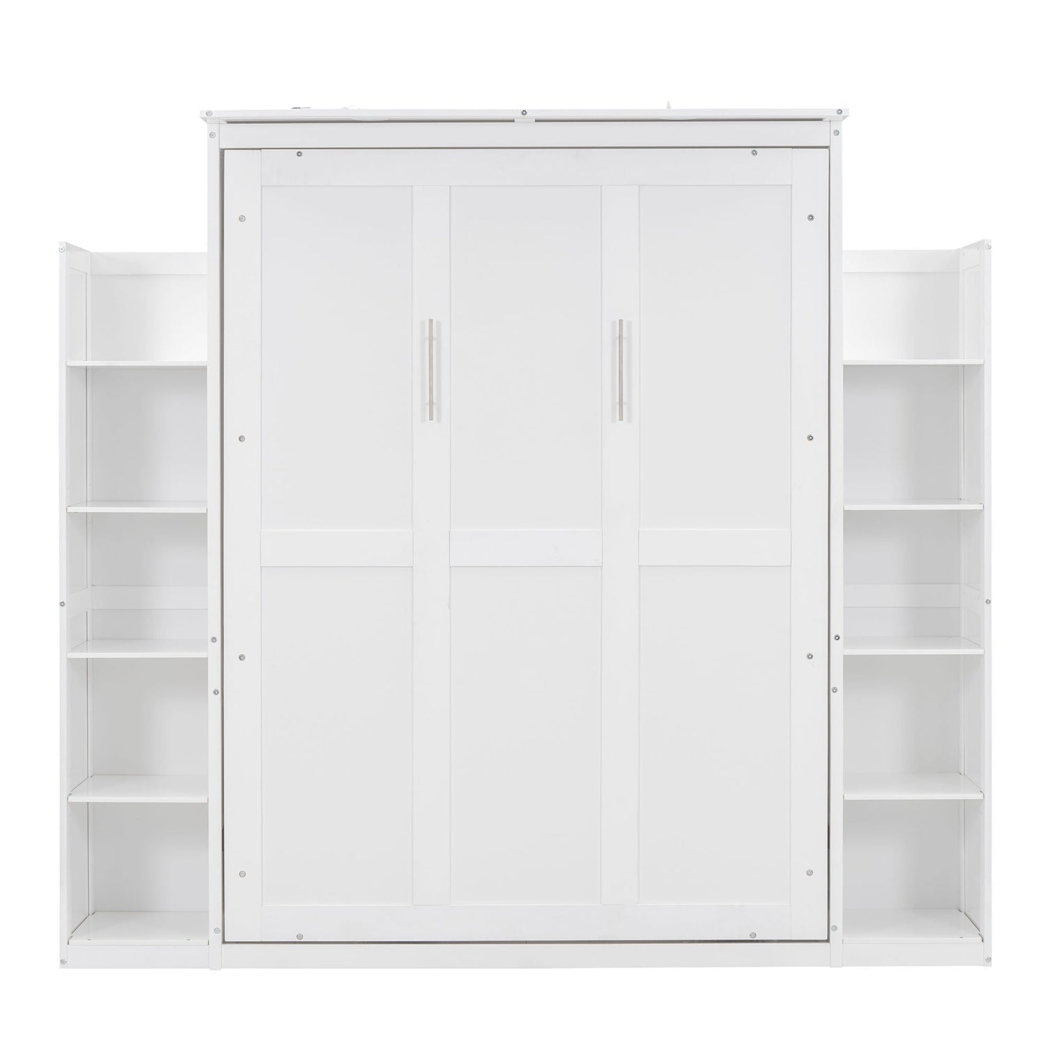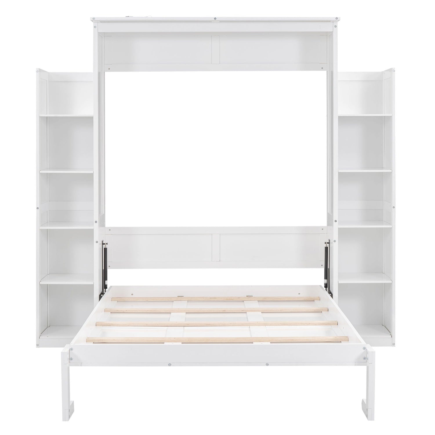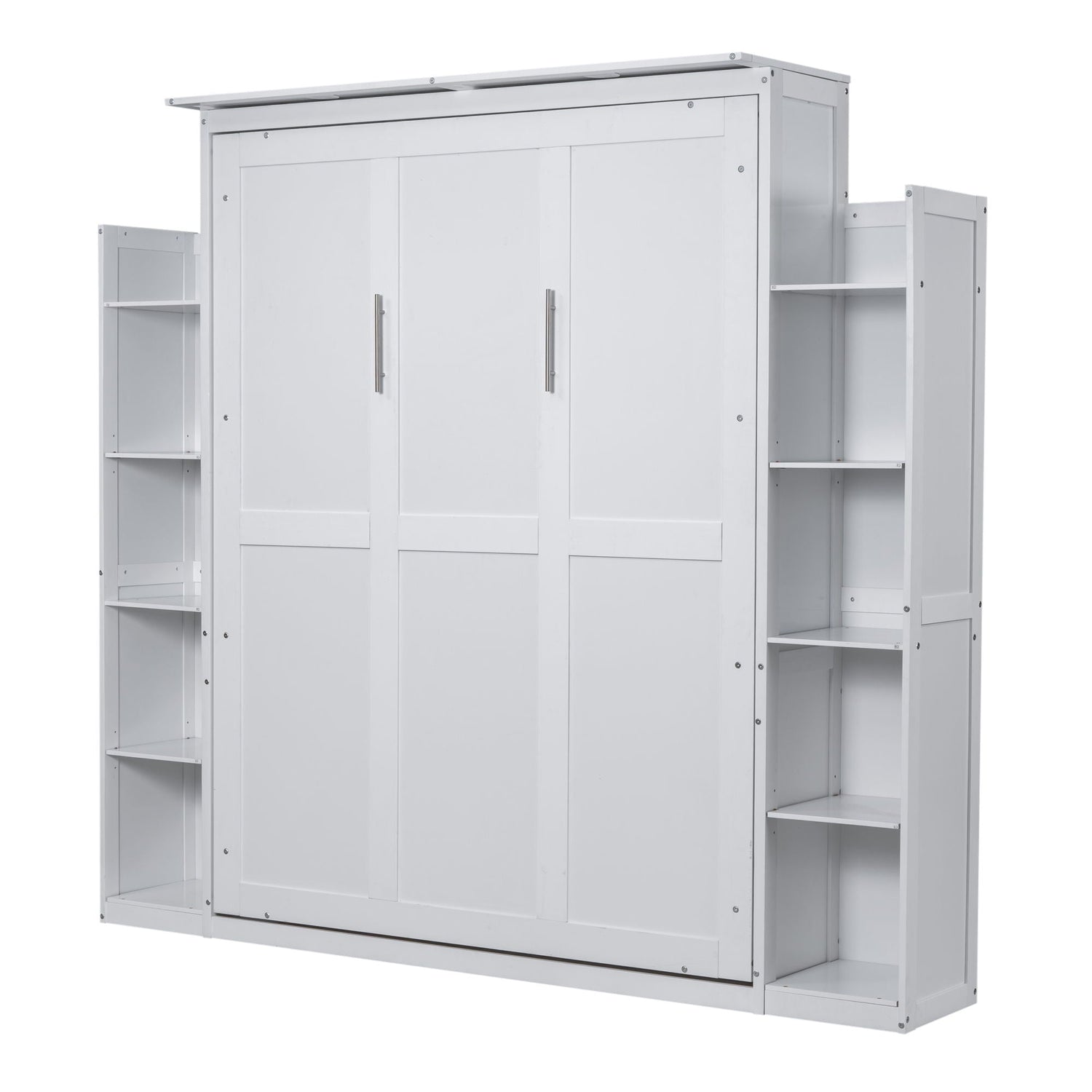 Queen Size Murphy Wall Bed With Shelves And LED Lights - White