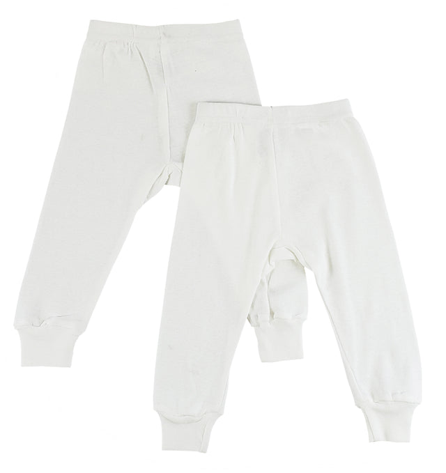 Interlock White Long Pants with Covered Elastic Waist & Ribbed Cuff - 2 Pack