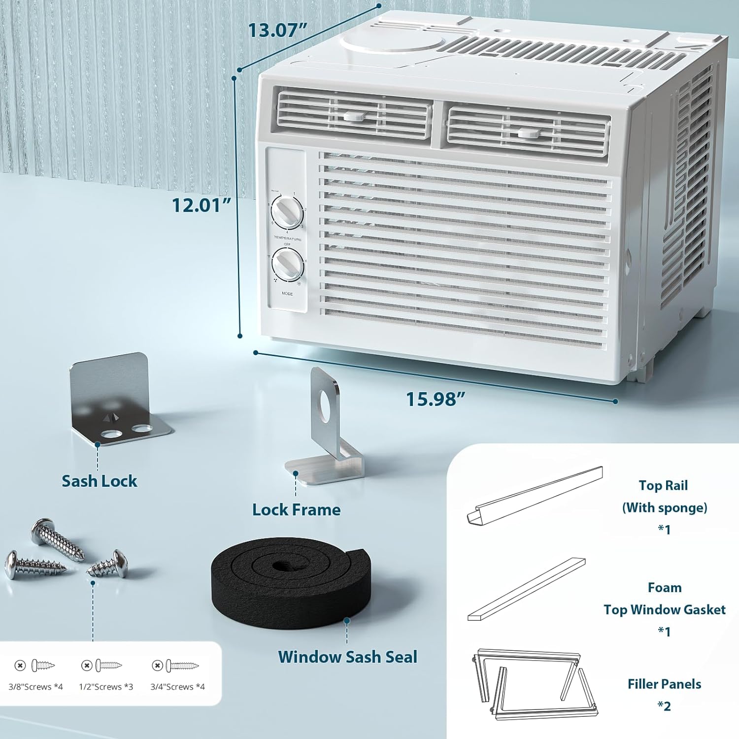 - 【ADJUSTABLE LOUVERS】: This window air conditioner has 2 louvers, which allow you to control horizontal airflow and the air deflectors to control vertical airflow. Easy to let your room fill with the cool air.
