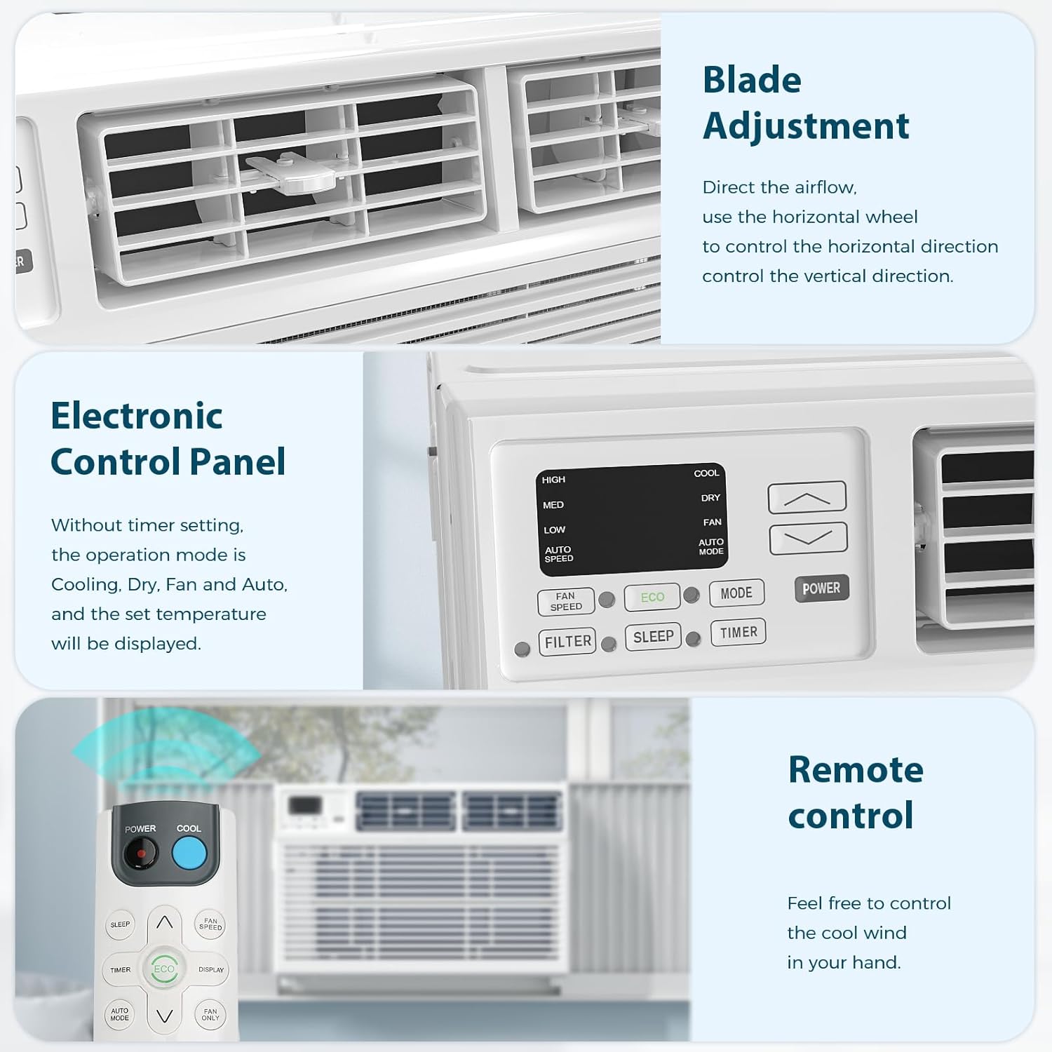 - 【ADJUSTABLE LOUVERS】: This window air conditioner has 2 louvers, which allow you to control horizontal airflow and the air deflectors to control vertical airflow. Easy to let your room fill with the cool air.