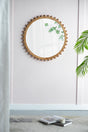 Wood Round Mirror With Beaded Frame, Circle Wall Mirror For Living Room Bedroom Entryway - Brown