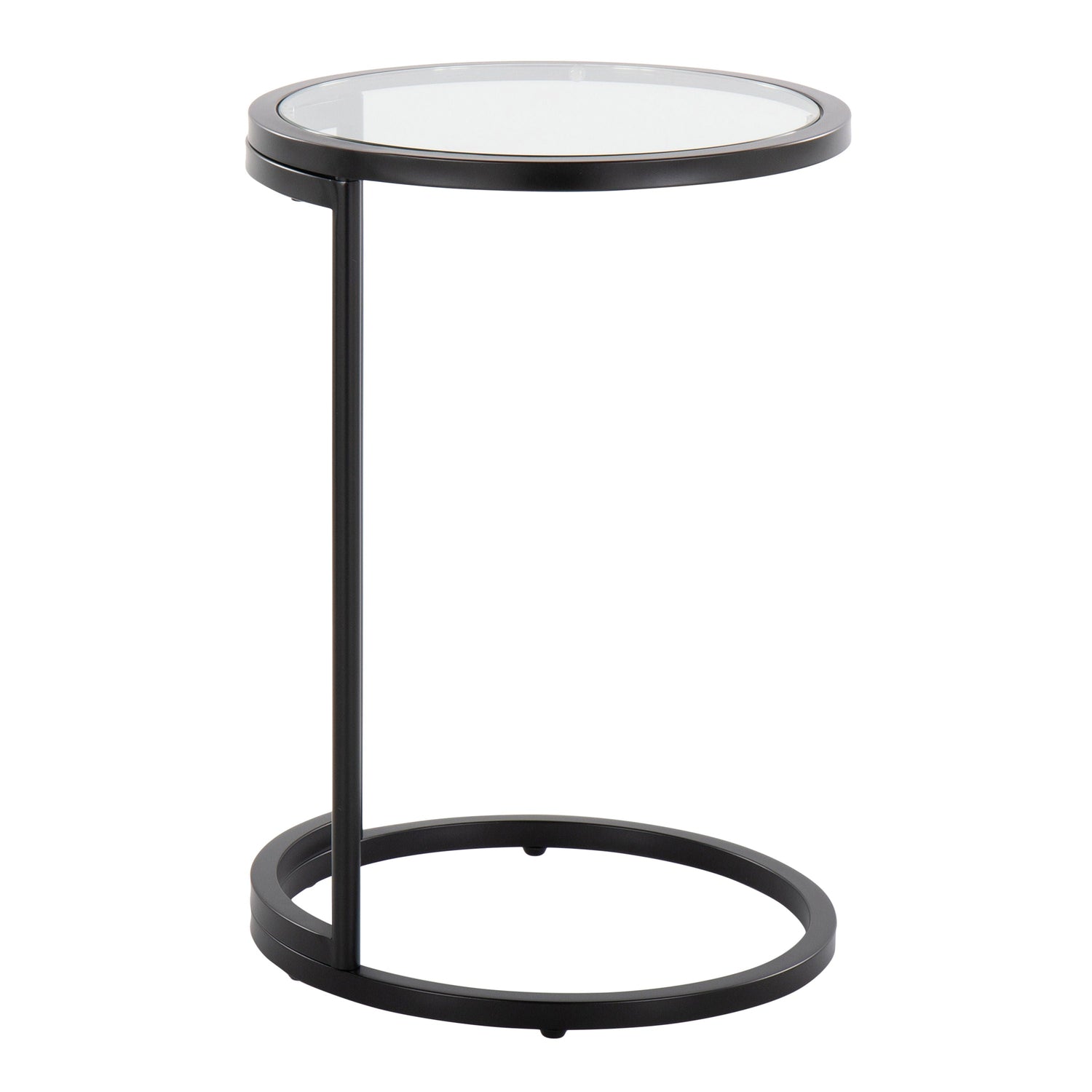 - Stylish Design: The Round Zenn End Table boasts a contemporary design with a gracefully cantilevered tempered glass shelf atop a sturdy metal frame, making it a versatile addition to any room.