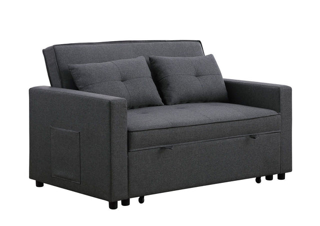 Zoey - Linen Convertible Sleeper Loveseat With Side Pocket - Dark Gray