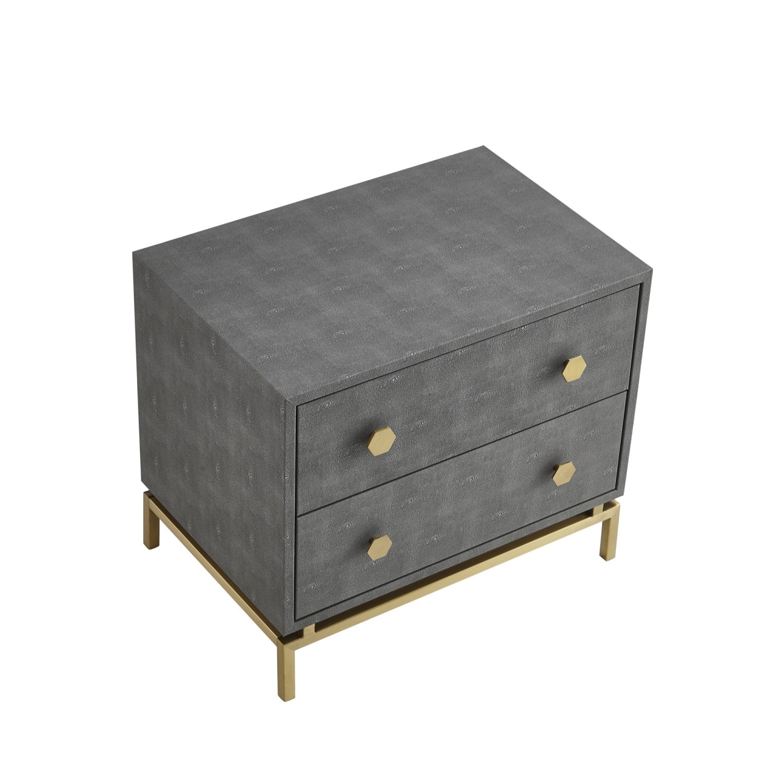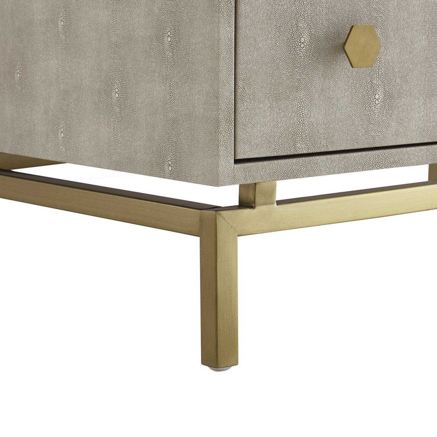 - PREMIUM QUALITY MATERIALS - Our side table is covered in faux shagreen. The pebbled texture is perfect for houses with earthy tones. It's made from durable MDF with a brushed metal base. Also, the brushed octagon knobs add uniqueness.