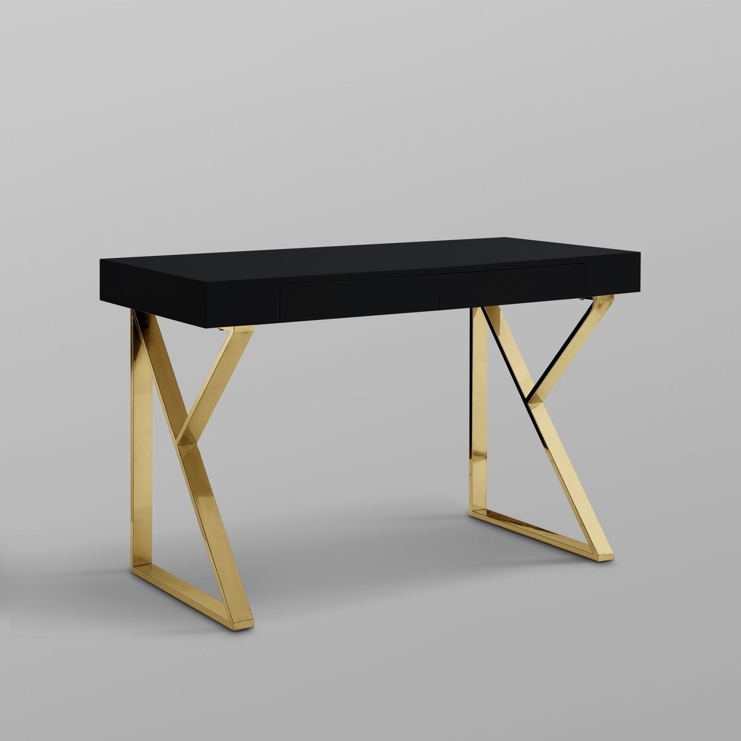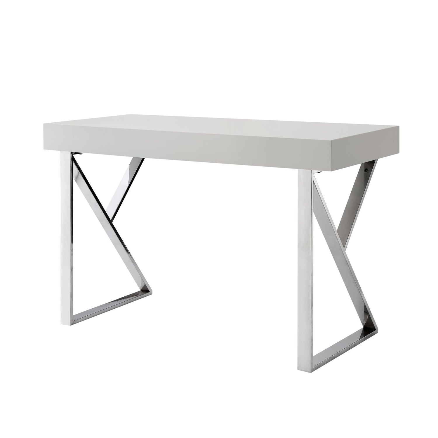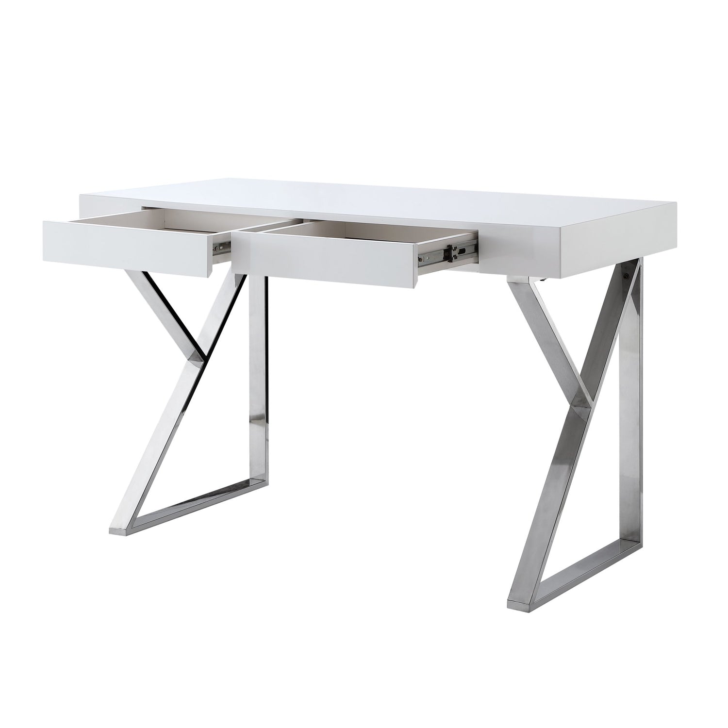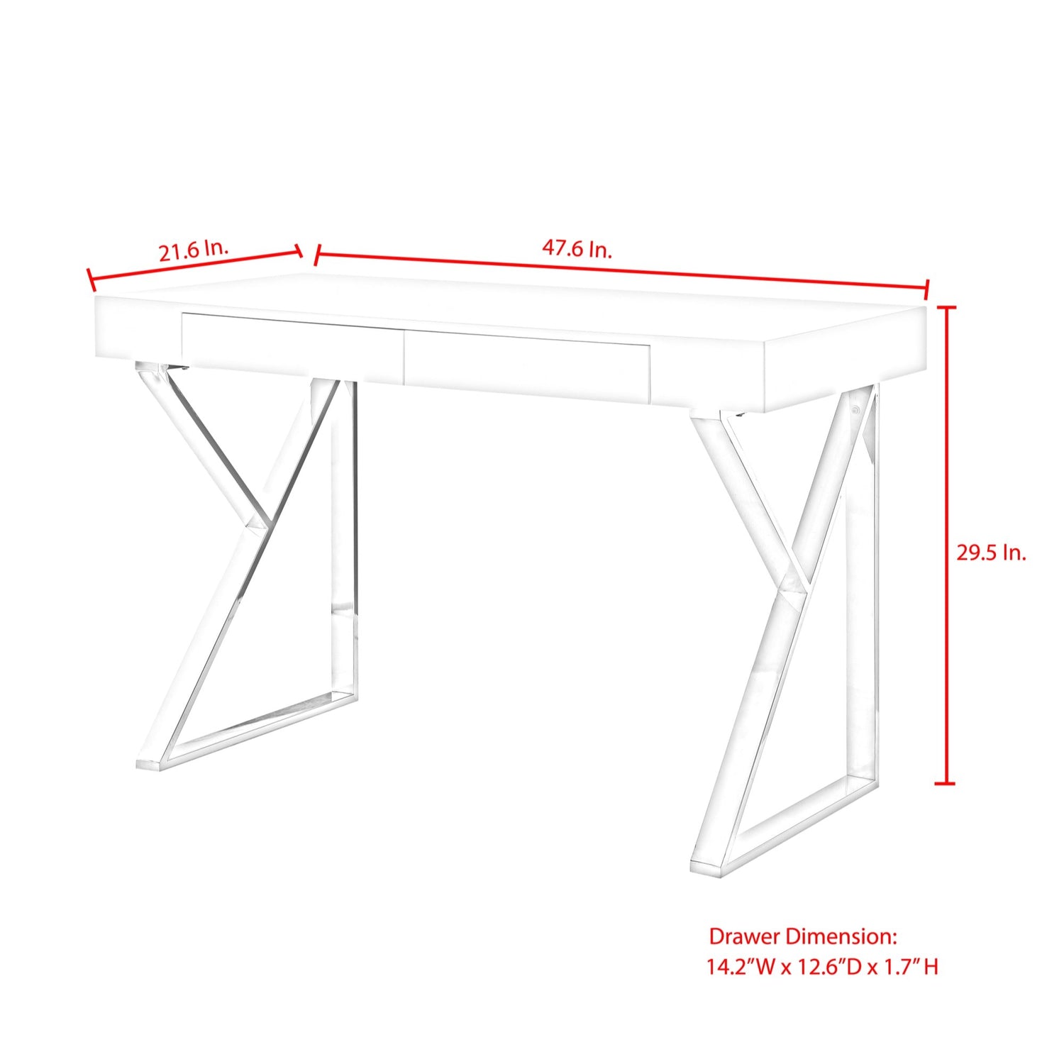 - CONTEMPORARY DESIGN – This unique luxe high gloss desk is ideal for your home office. The stylish kind of criss-cross design stainless steel shiny legs provide sturdy support while the glossy finish adds glamorous style. This practical fashionable desk offers ample surface room, creating that modern cozy atmosphere in your home and enhancing the surrounding décor